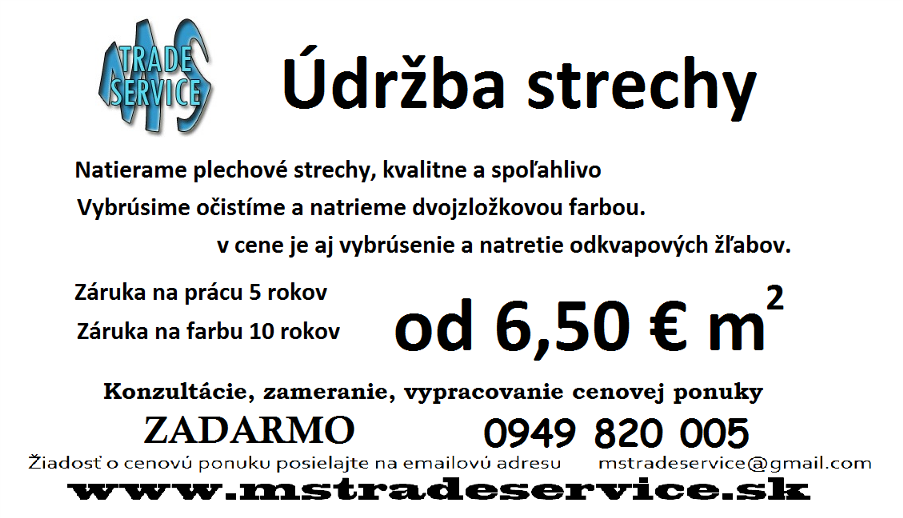 V prípade záujmu o naše služby nám stačí napísať správu do emailu, napísať SMS, prípadne zatelefonovať a my Vás budeme spätne kontaktovať, prídeme na obhliadku a predložíme Vám nezáväznú cenovú ponuku. ZADARMO.